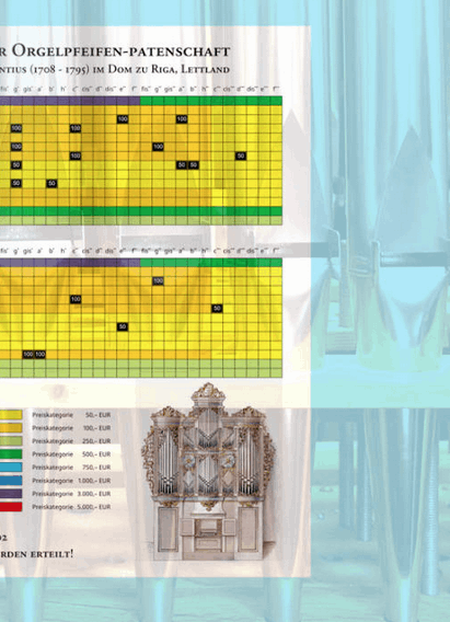 Diese soll in den kommenden zwölf Monaten 400.000 Euro erbringen, je zur Hälfte in Deutschland und in Lettland. Dafür will die originalgetreue Abbildung des Orgelprospekts bei allen Besuchern der Kirche einen ähnlichen Aha-Effekt hervorrufen wie seinerzeit Wilhelm von Boddiens Attrappe des Berliner Stadtschlosses.